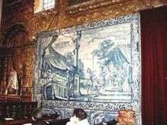 The 17th century decoration is also represented in the azulejo tile, attributed to José Meço and Teotónio dos Santos, disciple of António Bernardes, who completed their projects between 1720 and 1730. The four panels represent the story of Joseph (son of Jacob), starting from the left of the altar with Joseph and his flock, Joseph and his brothers, the well where he was imprisoned and the revelation to his father (Jacob); while to the right of the altar, the Pharoh's dream and Joseph's interpretation, while the last panel shows Joseph's triumph in Egypt. On the floor slab, close to the grid is a tombstone, sculpted in marble relief.