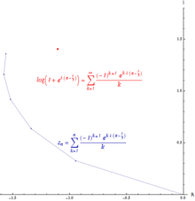If the series converges but the series diverges, then the series is conditionally convergent. The path formed by connecting the partial sums of a conditionally convergent series is infinitely long. The power series of the logarithm is conditionally convergent.