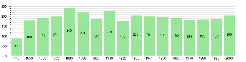 As of 2000, there were 87 people who were single and never married in the municipality. There were 94 married individuals, 19 widows or widowers and 5 individuals who are divorced.[9]