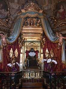 The church allows visitors to enter an adjacent site to see and pray to the enthroned mumified corpse of the 15th-century Clarisse nun and saint, canonized in the 18th-century.