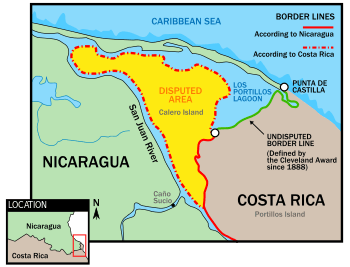 The Nicaragua–Costa Rica San Juan River border dispute is a series of periodical conflicts between the two Central American nations over the correct delimitation of their common border at its east-end, and the interpretation of the navigation rights on the San Juan River established in the Cañas-Jerez Treaty of 1858.[2]