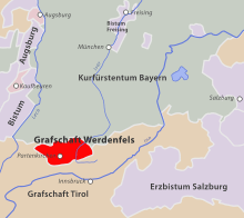 Werdenfels. The county was not contiguous with the Prince-Bishopric of Freising to the north