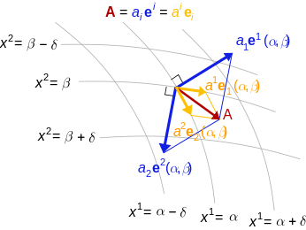 Curvilinear coordinate systems, such as cylindrical or spherical coordinates, are often used in physical and geometric problems. Associated to any coordinate system is a natural choice of coordinate basis for vectors based at each point of the space, and covariance and contravariance are particularly important for understanding how the coordinate description of a vector changes in passing from one coordinate system to another.