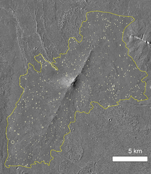 The accuracy of age estimates of geologically young surfaces based on crater counting on Mars has been questioned due to formation of large amounts of secondary craters. In one case, the impact that created Zunil crater produced about a hundred secondary craters, some more than 1000 km from the primary impact. If similar impacts also produced comparable amounts of secondaries, it would mean a particular crater-free area of Mars had not been "splattered by a large, infrequent primary crater", as opposed to suffering relatively few small primary impacts since its formation.[1][2]
