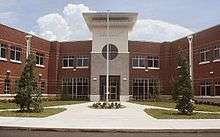 Building 100 at Crystal River High School, which houses the school's Administration, as well as classroom space. "Make Footprints with your Heart." | |