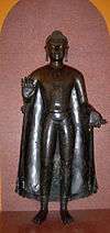 The first sculptures in Bihar date back to the Mauryan Empire. The Pillars of Ashoka and Didarganj Yakshi are estimated to be at least 2000 years old, and were carved out of a single piece of stone.[9] Ancient statues are found throughout Bihar. Some of these sculptures were made from bronze, an advanced technique at that time. For example, the Sultanganj Buddha statue, estimated to be 1500 years old, is about seven feet tall and made of 500 kg of bronze, making it the largest statue of that period. Many statues, ranging from Hellenistic gods to various Gandharan lay devotees, are combined with what are thought to be early representations of the Buddha and Bodhisattvas.