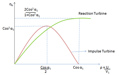Graph depicting efficiency of Impulse turbine