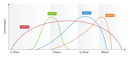 Cyclin A is a member of the cyclin family, a group of proteins that function in regulating progression through the cell cycle.[1] The stages that a cell passes through that culminate in its division and replication are collectively known as the cell cycle[2] Since the successful division and replication of a cell is essential for its survival, the cell cycle is tightly regulated by several components to ensure the efficient and error-free progression through the cell cycle. One such regulatory component is cyclin A which plays a role in the regulation of two different cell cycle stages.[1][3]