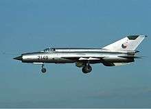 During the 1980s and early 1990s, the Czechoslovak Air Force consisted of the state air defence command, with air defence fighters, surface to air missiles, and air defence radars, and the 10th Air Army, responsible for ground forces support. The state air defence command had 2nd Air Defence Division (Brno) with 8th Fighter Air Regiment, radars, and surface to air missiles, and the 3rd Air Defence Division (Žatec) with the 1st (České Budějovice), 5th (Dobřany), and 11th Fighter Air Regiments (Zatec), and the 71st Anti-Aircraft Missile Brigade and 185th Anti-Aircraft Missile Regiment.[7] 8th Fighter Air Regiment was based at (Ostrava) (Mošnov) from 1959 until 1 April 1985, whereupon it relocated to Brno (Tuřany). It was equipped with the MiG-21 from 1965 to 1991. 1st Fighter Air Regiment at České Budějovice was equipped with MiG-21s from 1964, and was disbanded in 1992.