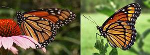 Monarch (left) and viceroy (right) butterflies exhibiting Müllerian mimicry