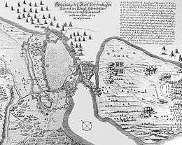 The Swedish siege force consisted of 11 brigades and 16 squadrons comprising 4,000 infantry, 2,000 cavalry and 50 cannons. The Swedes took the outer defensive perimeter, built in 1625 by Christian IV, which had fallen into disrepair. It was hastily repaired and artillery was brought to bear on the city.[8] The Danes would not let the Swedish attack go uncontested, and made several counter-attacks. On August 23, 1658 almost 3,000 students, sailors and soldiers staged a surprise sortie through a hidden passage in the wall,[9] destroying fortifications under construction and capturing three cannons.[10]