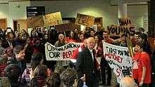 Public opinion swayed against Sir David in March 2016 with staff running a vote of no confidence against him as head of the University executive.[6] Students and staff also disrupted the University's 90th Birthday celebrations, preventing a planned record breaking chairlift attempt. This was following his decision to spend £36 million on a consultation with PwC in a move to reorganise the entire administrative structure of the University of Reading within one year. It is suggested as many as 1700 jobs have been put at risk, and these moves were decided without disclosure or consultation with staff or students. [7] In the same year as many staff were faced with redundancy or downgrading, he was awarded a £26,000 pay increase, whilst already earning over a quarter of a million pounds per year.