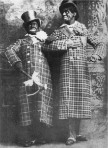 Hill's tour continued, finally closing on 22 May 1897 in Cleveland. Montgomery spent the summer in New York and Stone with his family in Chicago, a pattern they would repeat for the length of their partnership.[8] The Russell Brothers show opened on 2 October 1897 at the Olympic Theatre in Chicago. While still in blackface, Montgomery and Stone had a new comic song and dance act that had shed its minstrel origins.[8] A review of the show said "Montgomery and Stone, in blackface, gave excellent imitations of real politicians, the hobby of the day, and by their singing and quaint expressions, as well as their startling moves, kept the audience laughing and applauding."[9]