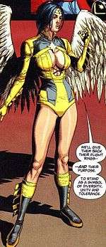 After the Legion's timeline was "reset" by the Legion's battle with Mordru,[6] Dawnstar was shown as having been possessed by an evil entity called Bounty in the new timeline, who amputated her wings and forced her to use her tracking powers as an assassin. Dawnstar was later freed from the entity's control.[7] She was spiritually healed, but her destiny was never resolved, as she vanished[8] shortly before the Legion's timeline was erased by the events depicted in Zero Hour and by the ensuing reboot.