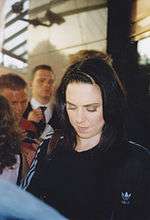 Chisholm is half-sister of racing driver Paul O'Neill.[160] Since October 2000, Chisholm has been open about her struggles with ADHD, clinical depression, and an eating disorder, which she has experienced several times during her life.[57] Years later, she said about her eating disorder to Contact Music: "I'd hammered the gym for three hours a day. It was a way of running away, not thinking. I felt like a robot. When the papers started calling me 'Sumo Spice', I was only a size 10. But I was so upset by all the criticism, it got worse and I went up to a size 14".[57][161] In 1997, she had a brief relationship with Robbie Williams.[162] In 1998, she dated record producer Jake Davies.[163] In the summer of the same year, she had a relationship with Anthony Kiedis, the vocalist of Red Hot Chili Peppers.[164][165] Kiedis wrote "Emit Remmus", which is "summer time" spelled backwards, inspired by his relationship with Chisholm.[166] The song was included in Californication.[167] In 2000, Chisholm and Jason "J" Brown had a troubled relationship, with break ups and returns, along with Brown calling her "ugly" in an interview, worsening her depression.[168][169] In 2002 she began a relationship with property developer Thomas Starr, who helped her beat depression, but they never married.[170] On 22 February 2009, Chisholm gave birth to her daughter Scarlet Chisholm Starr at the Portland Hospital in London.[171]
