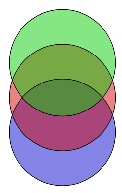 Logical fallacy: Since most of the green is touching red, and most of the red is touching blue, most of the green must be touching blue. This, however, is a false statement.