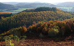 A granite obelisk atop Dùn Mòr (English: The great hill) to the north commemorates Henry Dundas, 1st Viscount Melville. It was designed by James Gillespie Graham in 1812.[9] This monument is reached via a woodland trail through wooded Glen Lednock (Scots Gaelic: Gleann Leathad Cnoc) in which is to be found the Slocha'n Donish or De'ils Caldron (also known as the Falls of Lednock). The trail begins in the village, at Laggan Park (Gaelic: An Làgan Mòr - The Great Basin) and ascends through a native forest of pines, oak, elm, ash rowan, alder and beech to Glen Lednock. Via The Shaky Bridge (although the original shaky bridge was replaced with a decidedly less shaky successor) the hiker is greeted with a splendid view of the glen, a truly highland landscape where a single lane road leads higher to Glen Lednock Reservoir and the Munro, Ben Chonzie. From here Dùn Mòr and the Monument are easily reached, offering unparalleled views across Strathearn and further west to the central highlands. A swift descent (or ascent depending on route chosen) leads through a long, steep, wooded gorge which contains the impressive Deil's Cauldron. Here the river has cut a high, cascading waterfall in the surrounding rock, with pools below resembling a boiling cauldron. It is said that a water-elf, Uris-chidh resides here and attempts to lure victims into the treacherous waters. Following the path down a lesser companion to the great falls, The Wee Cauldron, which offers a calmer view of the river. Following the path through the forest eventually returns the walker to the village.