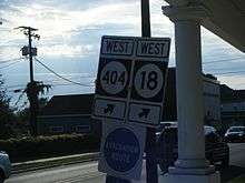 At this point, DE 18 heads east concurrent with DE 404 along Seashore Highway, running through a mix of farmland and woodland with some residences, passing through tracts of the Redden State Forest. Farther east, DE 18/DE 404 heads into Georgetown, running to the north of Delaware Technical Community College's Jack F. Owens Campus. The road intersects US 113 and the western terminus of DE 404 Truck in a commercial area and continues east. The two routes head southeast onto North Bedford Street, passing homes and businesses. The road comes to an intersection with US 9 at The Circle in the center of Georgetown, where the Sussex County Courthouse is located. At this point, DE 18 ends and DE 404 continues east along US 9.[3][4]