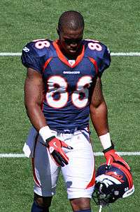 Demaryius Antwon Thomas (born December 25, 1987) is an American football wide receiver for the Denver Broncos of the National Football League (NFL). He played college football at Georgia Tech. Thomas was drafted by the Broncos in the first round of the 2010 NFL Draft.[1]