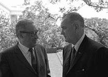 Johnson appointed Marshall to the Supreme Court following the retirement of Justice Tom C. Clark, saying that this was "the right thing to do, the right time to do it, the right man and the right place." Marshall was confirmed as an Associate Justice by a Senate vote of 69–11 on August 31, 1967.[19] Johnson confidently predicted to one biographer, Doris Kearns Goodwin, that a lot of black baby boys would be named "Thurgood" in honor of this choice (in fact, Kearns's research of birth records in New York and Boston indicates that Johnson's prophecy did not come true).[20]