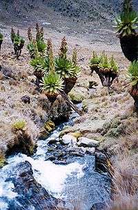- 1 2 3 Young, Truman P.; Mary M. Peacock (March 1992). "Giant senecios and alpine vegetation of Mount Kenya". Journal of Ecology. JSTOR. 80 (1): 141–148. doi:10.2307/2261071. JSTOR 2261071.