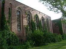 The central campus area also includes Evans Chapel, an 1870s-vintage small church which was once located in downtown Denver, and was relocated to the DU campus in the early 1960s. Buchtel Tower (1913) is all that remains of the former Buchtel Chapel, which burned in 1983. The administrative offices are located in the Mary Reed Building, a former library built in 1932 in the Collegiate Gothic style. Margery Reed Hall (named for the daughter of Mary Reed) was also built in the collegiate gothic style in 1929. Margery Reed Hall has recently been designated to house the Undergraduate Program for the Daniels College of Business; an $8 million overhaul and renovation was just completed early 2014. The update for the building was to include more classroom space, a larger hall to host guest speakers, as well as mechanical and technical improvements.