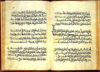 The manuscripts also contain evidence of lost texts. For example, there is some evidence of a lost pre-Islamic Arabic version of the translation that is thought to have been an intermediary between the Syriac Christian and the Ethiopic Christian translations.[15] There is also evidence that the Syriac translation was not directly based on the Greek recensions but was based on a lost Pahlavi (pre-Islamic Persian) intermediary.[8]