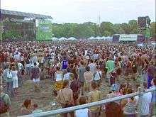 The week-long festival has grown from a relatively low-profile student event in 1993 to become one of the prominent European rock festivals, with about half of all visitors coming from outside Hungary, especially from Western Europe.[1] It also has a dedicated "party train" service (with resident DJs) that transports festivalgoers from all over Europe.[2] The second event (1994), labeled Eurowoodstock, was headlined by performers from the original Woodstock festival. By 1997 total attendance surpassed the 250,000 mark, reaching an all-time peak in 2016 with 496,000 visitors from 95 countries (the daily capacity having been raised to 90,000).[3] It is now being increasingly labeled as a European alternative to the Burning Man festival due to its unique features ("an electronically amplified, warped amusement park that has nothing to do with reality").[4]