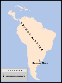 The Serbian Orthodox Diocese of Buenos Aires (Serbian: Епархија буеносајреска/Eparhija buenosajreska, Spanish: Diócesis de Buenos Aires Patriarcado Ortodoxo Serbio) or South America is a Serbian Orthodox Church diocese with the main headquarters located in the city of Buenos Aires, Argentina. The diocese has 17 churches in Argentina, Brazil, Chile, Dominican Republic, Venezuela, Ecuador and Peru. In October 13, 2012, was realized the first session of diocese under the rule of the actual administration of Metropolitan bishop Amfilohije Radović.[1][2][3][4]