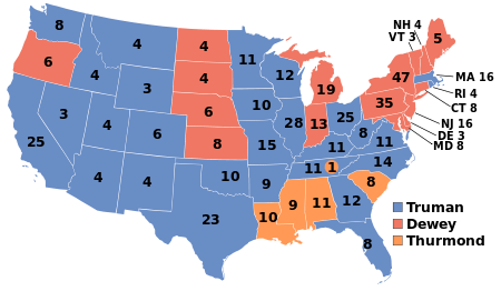 - ↑ Donaldson, Gary (2000). Truman Defeats Dewey. University Press of Kentucky. pp. 118–122. Retrieved 8 October 2015.