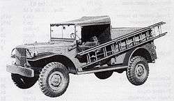 The Dodge WC series was a range of light military trucks produced by Dodge and Fargo during World War II. The series included weapon carriers, telephone installation trucks, ambulances, reconnaissance vehicles, mobile workshops and command cars. They were replaced after the war by the Dodge M-series vehicles. WC was a Dodge model code: W for 1941 and C for half-ton rating. The C code was retained for the ¾ ton and 1½ ton 6×6 Dodges.[2]