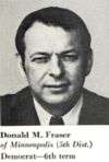 In 1954, Fraser was elected to the Minnesota Senate and served for eight years. In 1962, he was elected to the House of Representatives from Minnesota's Fifth District. He served there in the 88th, 89th, 90th, 91st, 92nd, 93rd, 94th, and 95th congresses, from January 3, 1963 until January 3, 1979. He gave up his seat to run for the US Senate. He narrowly lost the 1978 Senate primary election to Bob Short, who then lost in the general election to David Durenberger.