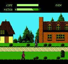 The player starts out controlling Dr. Jekyll on his way to the church, walking to the right. As he takes damage from the various enemies and obstacles, his Life Meter decreases and his Anger Meter increases. If his Life Meter is fully depleted, Dr. Jekyll dies and the game is over. If his Anger Meter completely fills, however, he transforms into Mr. Hyde. Day turns to night and monsters appear. At this point, the level is mirrored vertically and Mr. Hyde walks from right to left with the screen autoscrolling. Mr. Hyde must kill monsters as fast as he can in order to turn back into Dr. Jekyll, with Shepp monsters generally giving the largest refill to his Meter, though killing other monsters may refill the Meter a small amount.