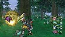 Player characters' combat abilities and skills are dictated by a character class-based job system. The jobs in the initial launch were Warrior, Priest, Mage, Martial Artist, Thief, and Minstrel. Later updates added further jobs, such as the Beast Tamer and Dancer.[4][8][9] Each job has a separate skill point system that allows customization, and jobs can be changed at dedicated temples found in each major town.[8] Player characters can also adopt Trades, skills that include woodwork, weapon and armor forging among others. Each Trade skill requires materials gathered from the overworld, which are then used to create a specific type of equipment unique to the gathered materials and Trade.[7] Weapons and items are acquired either in battle alongside in-game currency or through Guilds scattered through Bazaars located in major towns. Guilds will forge new gear, weapons and items for a combined fee of money and materials salvaged from the game world. Also found in towns are vendors where excess items can be stored, merchants which buy and sell various items, and tailor's establishments where the player character can gain new outfits.[7][10]