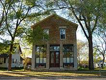The city's original central business district was located on Second Street, and by 1866 it included two general stores, a library, hotel, shoe store, restaurant, meeting hall and saloon. The neighborhood began to shift once the Minnesota Central Railway built its station on the west side of the river, resulting in the development of Railway Street and the platting of the Railway Addition in 1865. All that remains of the original commercial district is the Ault Store (built in 1866), which started as a general store and housed the town's first library on the second floor; the same building also served as the home of the Dundas News for its operation from 1876-79 when it was bought and absorbed by the Northfield News.[12]