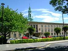 During the 1950s and 1960s, new housing estates were built north-west of the town.[29] This was followed by the redevelopment of the town centre in the 1960s and 1970s, which destroyed much of the old high street.[17][30] There was speculation that the town's population could increase to around 55–60,000 by 1970.[29] This did not happen: a decline in the linoleum industry in the mid-1960s led to a decrease in population, from a peak of 53,750 in 1961 to 47,962 in 1981.[12][29]