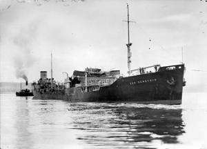 Eagle Oil and Shipping was registered in the United Kingdom. Therefore, after 1938 although the Mexican government had nationalised Mexican Eagle Petroleum, Eagle Oil and Shipping remained a subsidiary of Royal Dutch Shell. After 1938 the fleet continued to carry oil from the Gulf of Mexico to the UK.[14] During the Second World War the company played an important role in supplying petroleum and petroleum products to the United Kingdom. Oil tankers were a particular target in Germany's economic warfare against the Allies. Enemy action sank 17 Eagle Oil ships, killing at least 206 officers, men and DEMS gunners.