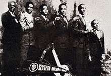Sexteto Occidente, New York 1926. Back row: Maria Teresa Vera (guitar), Ignacio Piñeiro (double bass), Julio Torres Biart (tres). Front row: Miguelito Garcia (clavé), Manuel Reinoso (bongó) and Francisco Sánchez (maracas).