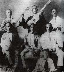 A charanga francesa formed early in the 20th century by flautist Octavio 'Tata' Alfonso. Its line-up at its peak was: Tata Alfonso (flute); Bruno Quijarro (violin); Pablo Bequé (double bass); Jesús Lopéz (piano); Abelardo Valdés (güiro); Ulpiano Díaz (timbales).[22] The band recorded six numbers for Columbia Records in 1918, and was regarded as one of the three most important charangas in the history of the danzón, and the first to incorporate melodies from the cantos de claves y guaguancó[23] in this genre.[24]