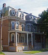 As Saratoga Springs began to develop into one of the country's most fashionable resorts in the late 19th century, it developed its own upper and upper-middle class. These people, primarily the owners of stores and spas and those who owned the firms that designed and built them, wanted to live in houses that reflected their success. They gravitated to the neighborhoods east of upper Broadway and north of Union Avenue, where the wealthy summer residents had their homes. Their own homes were scaled-down versions of those homes, often by the same architects, including R. Newton Brezee, who himself lived on the East Side.[1]