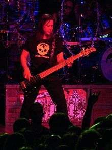 ![]() Eddie Jackson performing at Glasgow Carling Academy 2008 on his Mike Lull M5V black custom bass Photo: Shadowgate | |