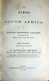 In 1887, Layard published The Birds of South Africa, where he described 702 species. This work was later updated by Richard Bowdler Sharpe (1847–1909).