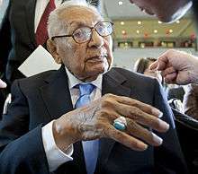 Edmond Andrew Harjo (November 24, 1917 – March 31, 2014) was an American Seminole Code Talker during World War II.[1] Harjo, who served with his brothers at the Normandy landings and the Battle of Iwo Jima, was the last surviving code talker from the Seminole Nation of Oklahoma.[2][3][4] On November 20, 2013, a group representing thirty-three Native American tribes were awarded the Congressional Gold Medal, the highest civilian honor bestowed by the United States Congress, for their service as code talkers.[1][4] Harjo was the only surviving code talker present.[4] He was presented with a silver duplicate of the gold medal representing his tribe.[4]