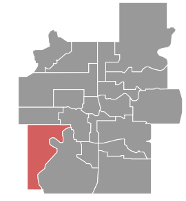 | Starting at the intersection of the west Edmonton city boundary with Whitemud Drive; then 1. east along Whitemud Drive to the left bank of the North Saskatchewan River; 2. generally southwest along the left bank of the North Saskatchewan River to the south Edmonton city boundary; 3. west and north along the Edmonton city boundary to the starting point. |