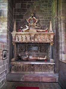 From the late 1580s, Edward Littleton and most of his relatives were closely allied to Robert Devereux, 2nd Earl of Essex. Even while Essex was at university, Edward Littleton, looking to the future had presented a horse to him.[2] Edward Littleton's wife, Margaret Devereux, was a cousin of the earl. Essex regarded Staffordshire as his own county and power base.[10] Essex's main seat, Chartley Castle, was in Staffordshire, between the county town of Stafford and Uttoxeter, and Littleton's brother, James, managed it for him. Essex was Staffordshire's senior civic official, the Custos Rotulorum, for several years. His mother Lettice Knollys lived at Drayton Bassett with her third husband, Sir Christopher Blount. Knollys became godmother to Edward Littleton's daughter Laetitia or Lettice.[2]