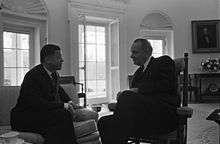Despite Brooke's disagreements with Nixon, the president reportedly respected the senator's abilities; after Nixon's election he had offered to make Brooke a member of his cabinet, or appoint him as ambassador to the UN.[16] The press discussed Brooke as a possible replacement for Spiro Agnew as Nixon's running mate in the 1972 presidential election.[17] While Nixon retained Agnew, Brooke was re-elected in 1972, defeating Democrat John J. Droney by a vote of 64%–35%.