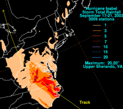 - 1 2 Wakefield, Virginia National Weather Service (2003). "Hurricane Isabel Prelinary Storm Report". Retrieved 2006-12-27.
