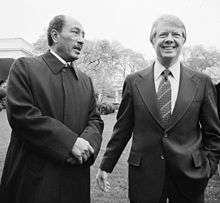After the 1973 Arab-Israeli War, Egyptian foreign policy began to shift as a result of the change in Egypt's leadership from the fiery Nasser to the much more moderate Anwar Sadat and the emerging peace process between Egypt and Israel. Sadat realized that reaching a settlement of the Arab-Israeli conflict is a precondition for Egyptian development. To achieve this goal, Sadat ventured to enhance U.S.-Egyptian relations to foster a peace process with Israel. After a seven-year hiatus, both countries reestablished normal diplomatic relations on February 28, 1974. In moving toward the U.S. in foreign policy, Sadat worked with President Richard Nixon to expel 20,000 Soviet technicians and soldiers and reopen the Suez Canal. Sadat opened negotiations with Israel, resulting most notably in the Camp David Accords brokered by President Jimmy Carter and made peace with Israel in a historic peace treaty in 1979.[2] Sadat's domestic policy, called 'Infitah,' was aimed at modernizing the economy and removing Nasser's heavy-handed controls. Sadat realized American aid was essential to that goal, and it allowed him to disengage from the Israeli conflict, and to pursue a regional peace policy.[3]