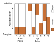 The order in which make and break occurs in a group of contacts is usually non-overlapping. Break comes before make. But with an early make and a late break contact the order is overlapping.