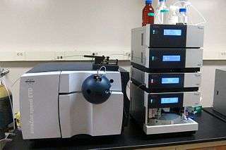 - ↑ Dass, Chhabil (2007). Fundamentals of Contemporary Mass Spectrometry. Hoboken, New Jersey: John Wiley & Sons. p. 128. ISBN 978-0-470-11848-1.